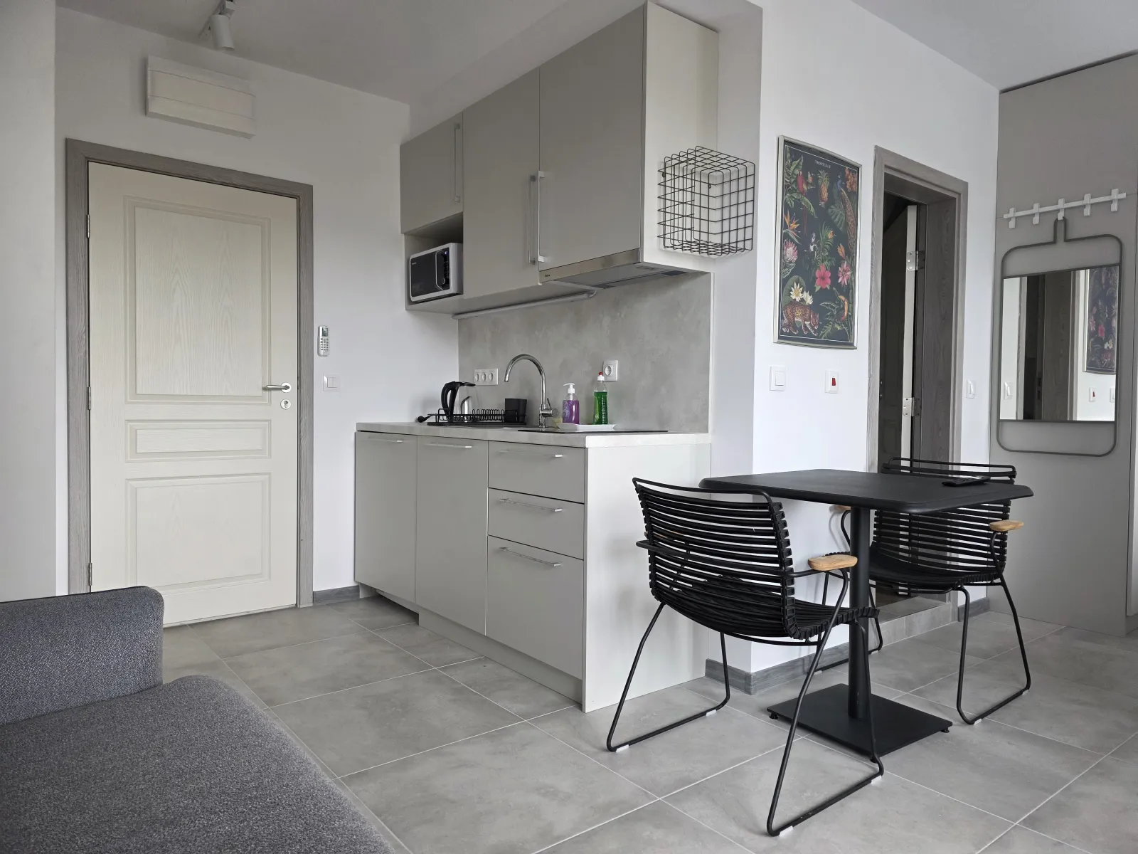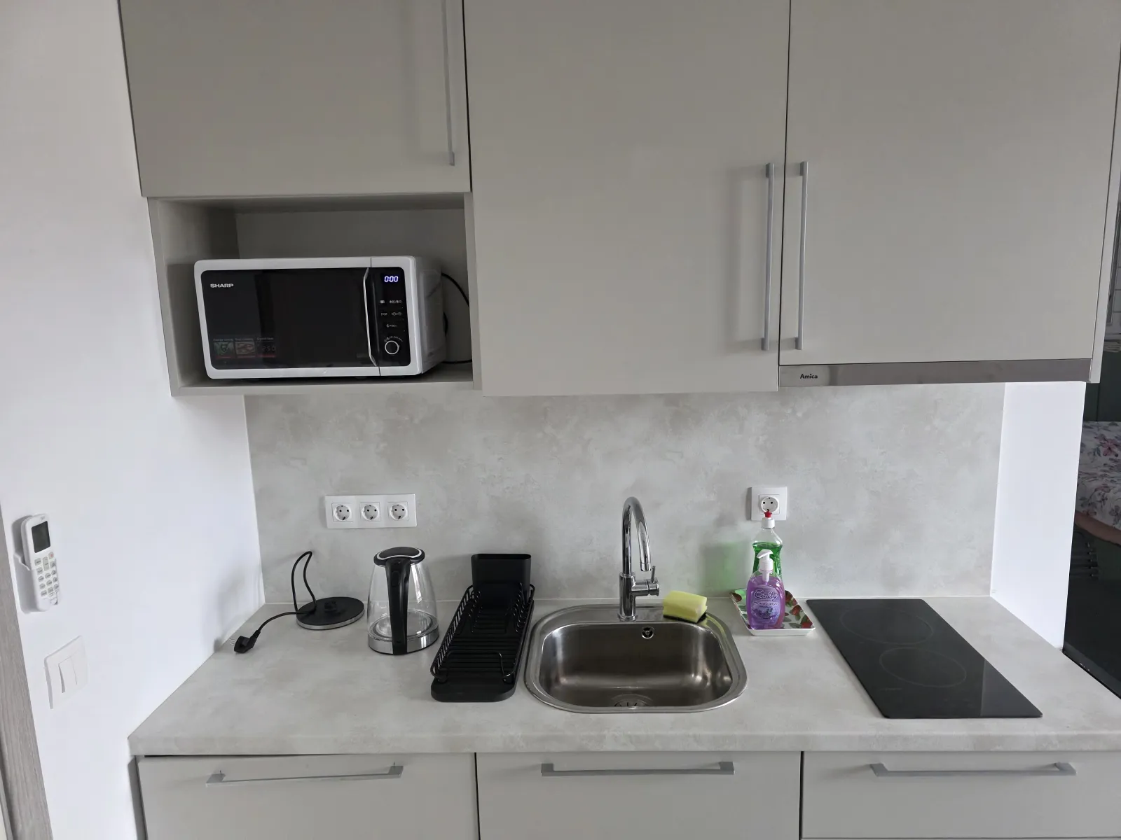 Azure Pearl е компактно и функционално студио, идеално за двойки или малки семейства.