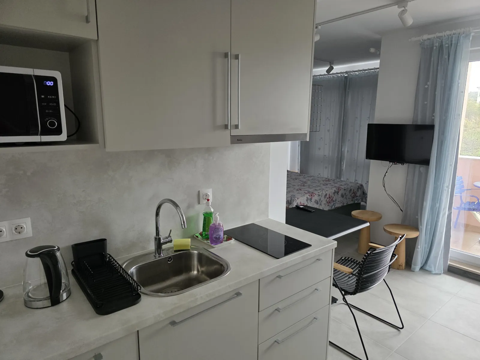 Просторно студио с балкон и гледка към синьото море. Луксозен интериор.