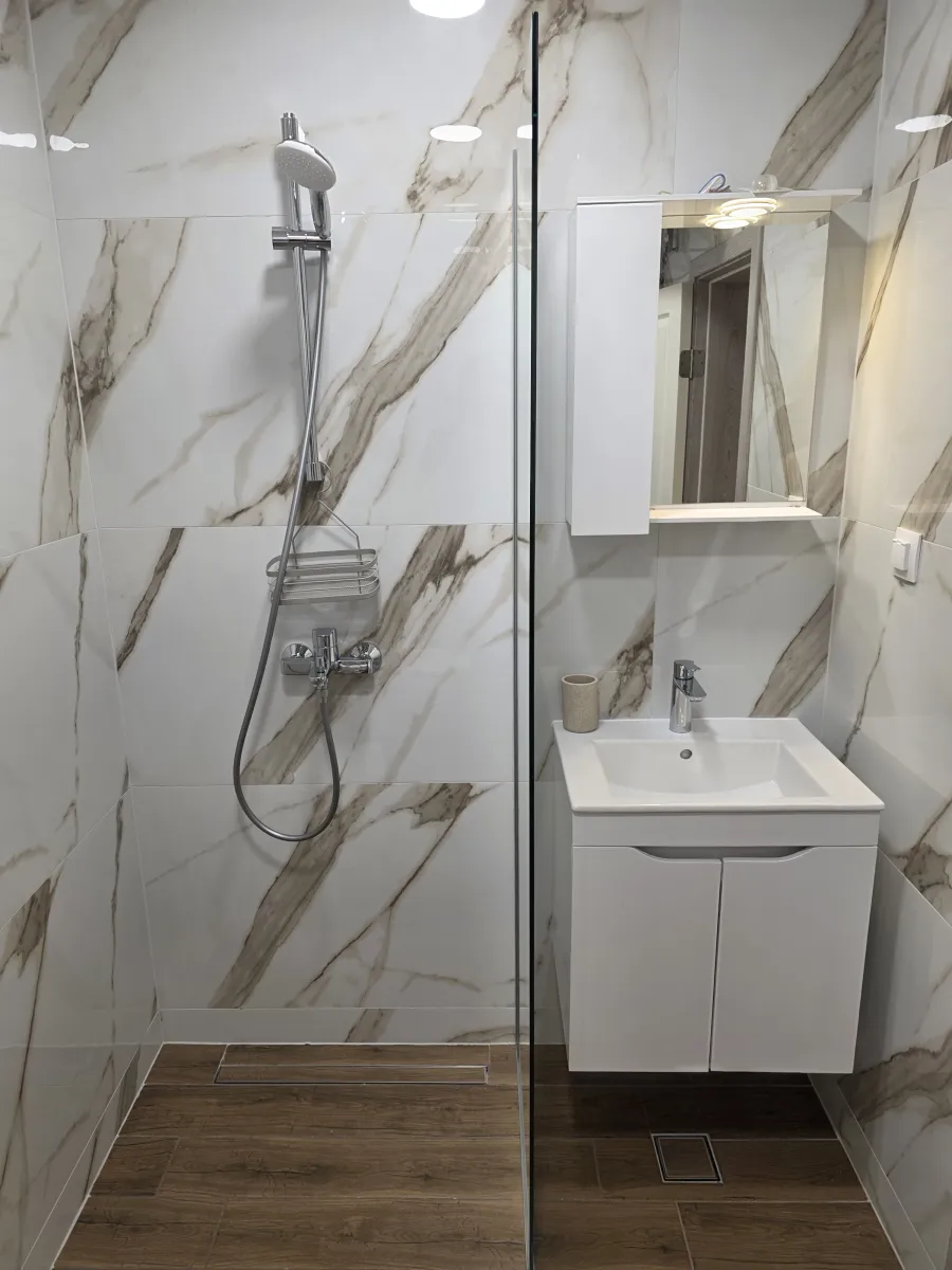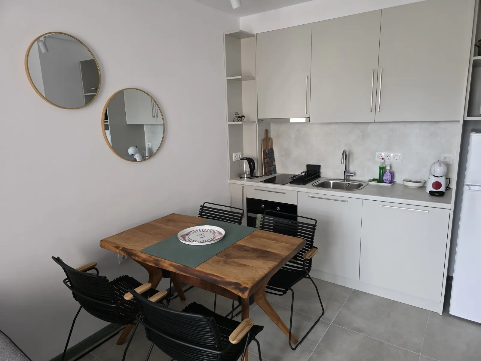Просторно студио с тераса и градинска гледка. Тихо и свежо.