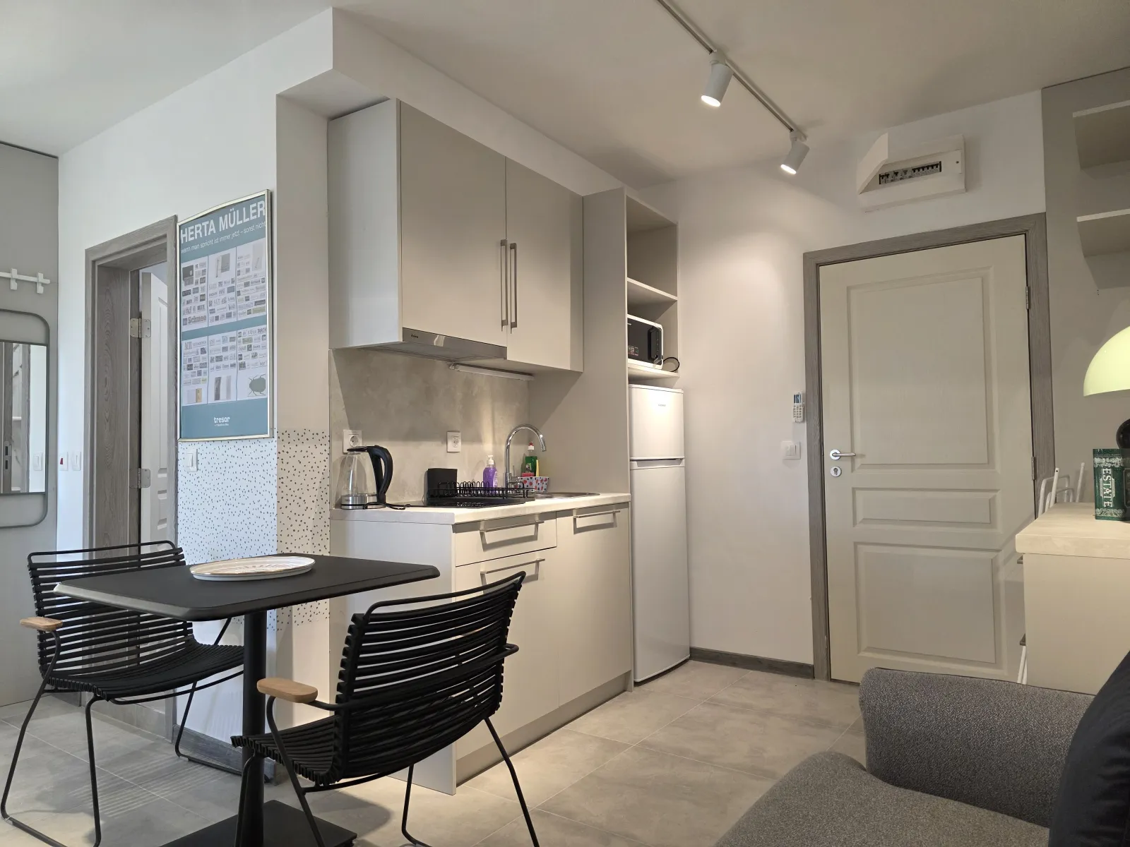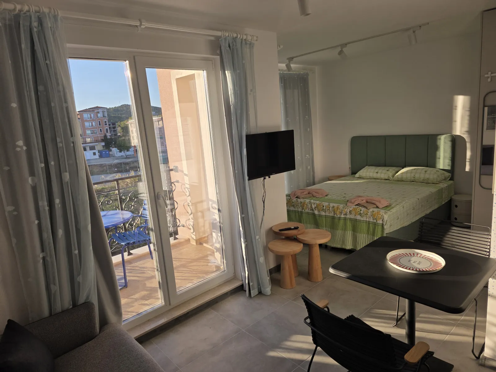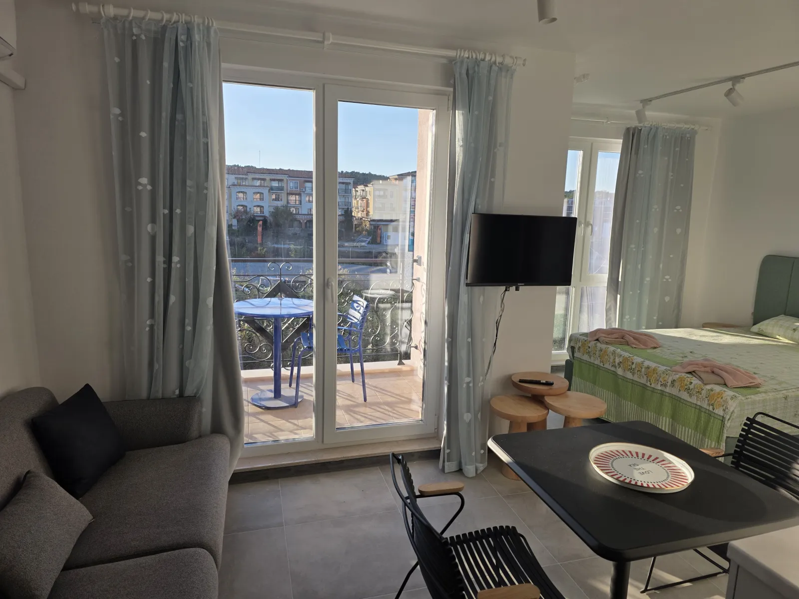 Просторно студио с балкон и гледка към синьото море. Луксозен интериор.