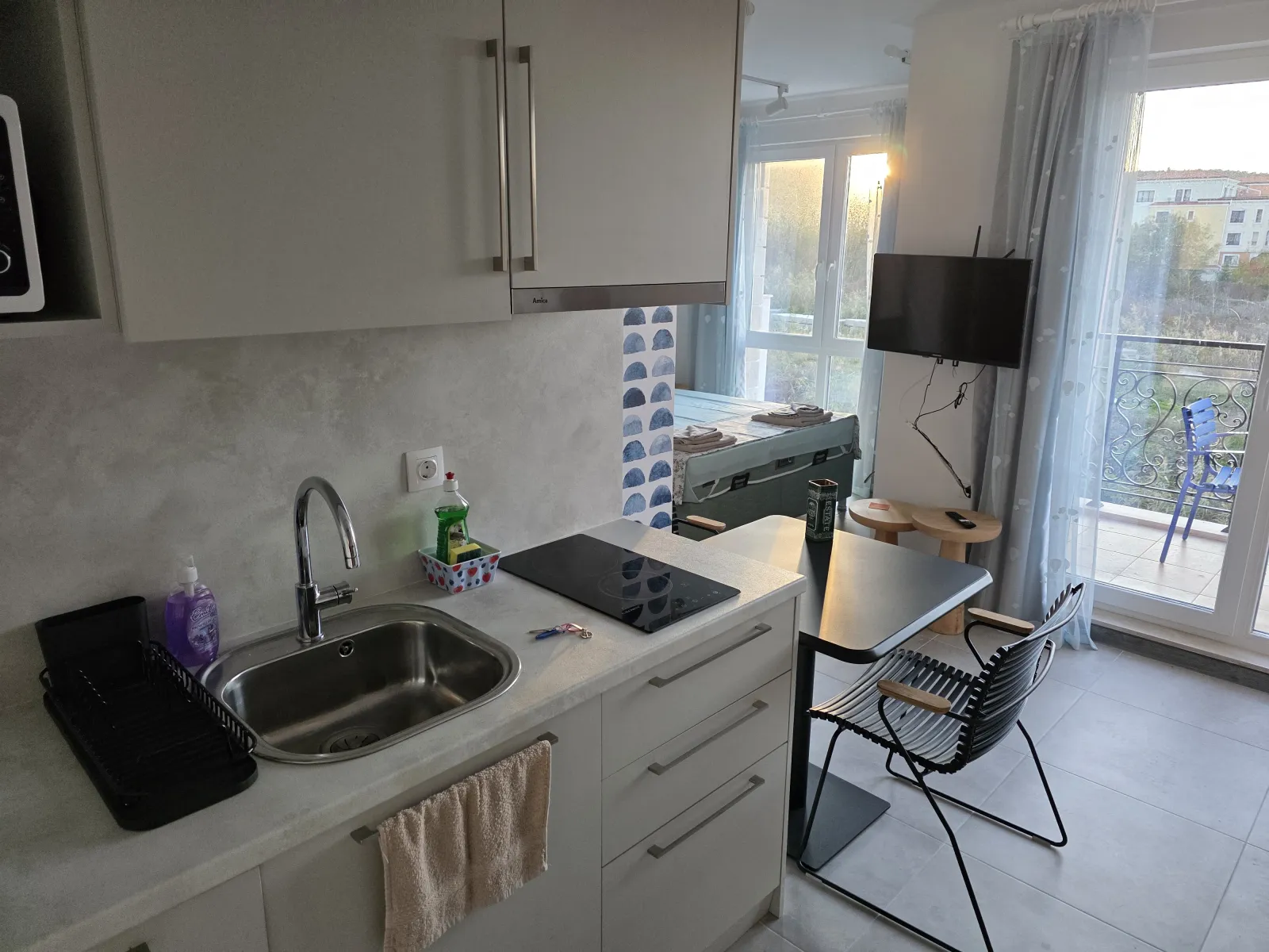 Просторно студио с балкон и гледка към синьото море. Луксозен интериор.