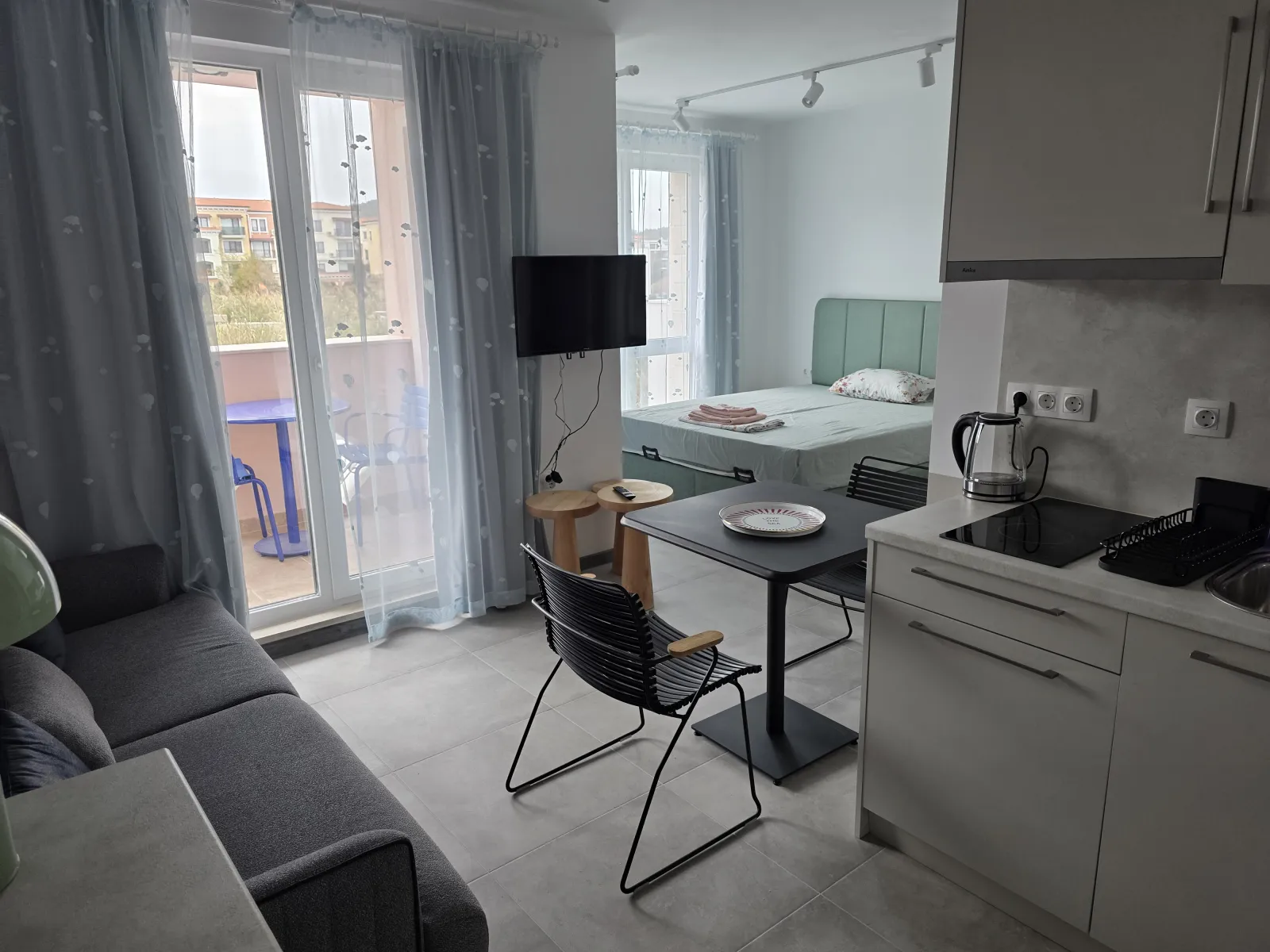 Просторно студио с тераса на 2-ри етаж, гледка към морето. До 3 гости.